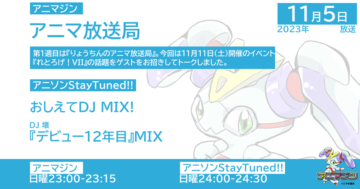 OBSラジオで週末2番組体制の放送をしているローカルアニラジ『アニマジン』、そして『アニマジン presents アニソンStayTuned!!』。2023年11月5日放送をおさらいしましょう。